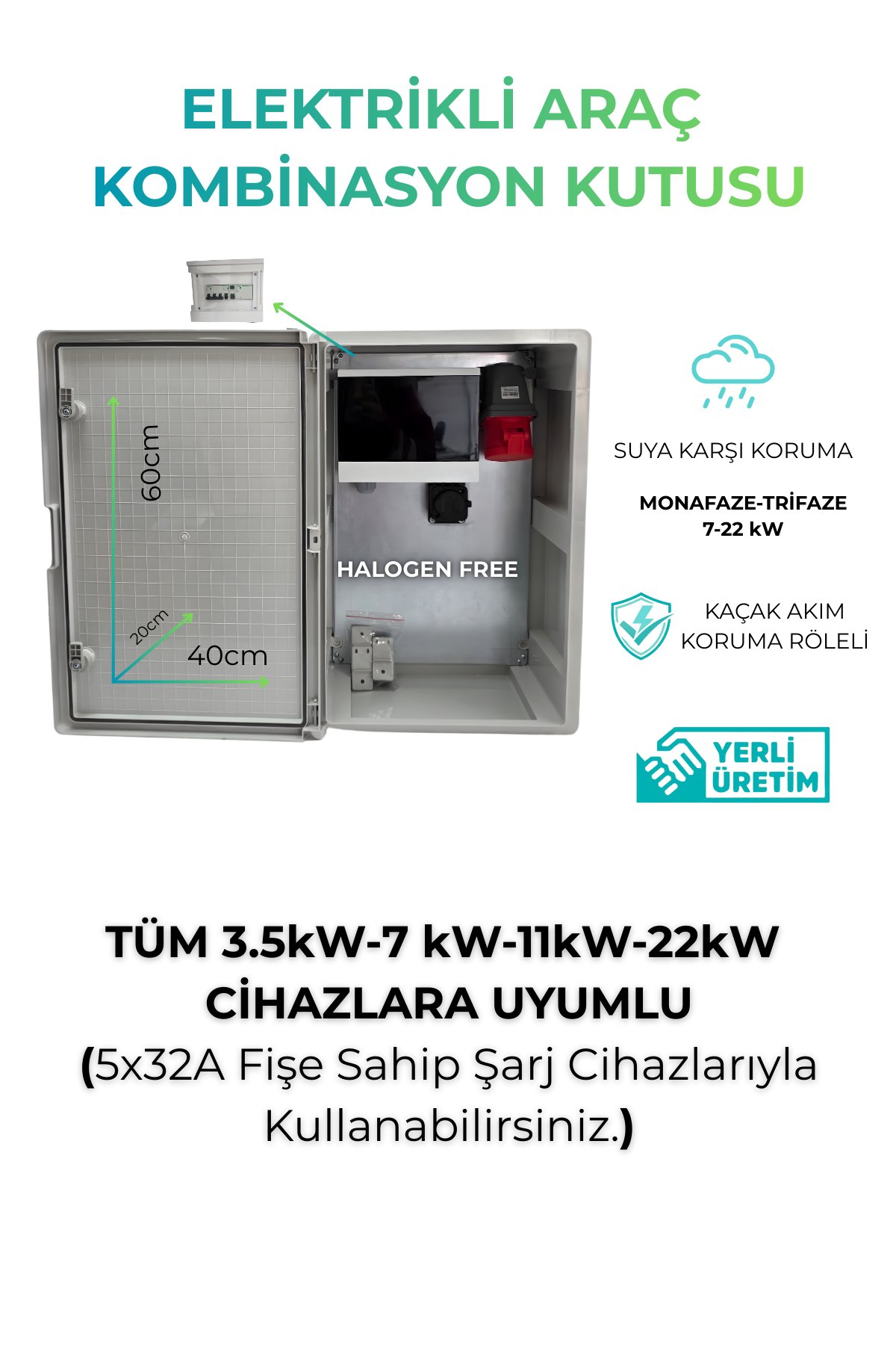 Bu pano, şarj cihazınızı (Wallbox) dış etkenlerden korurken, içerisindeki kaçak akım rölesi ve sigortalarla aracınızı ve elektrik tesisatınızı güvence altına alır.